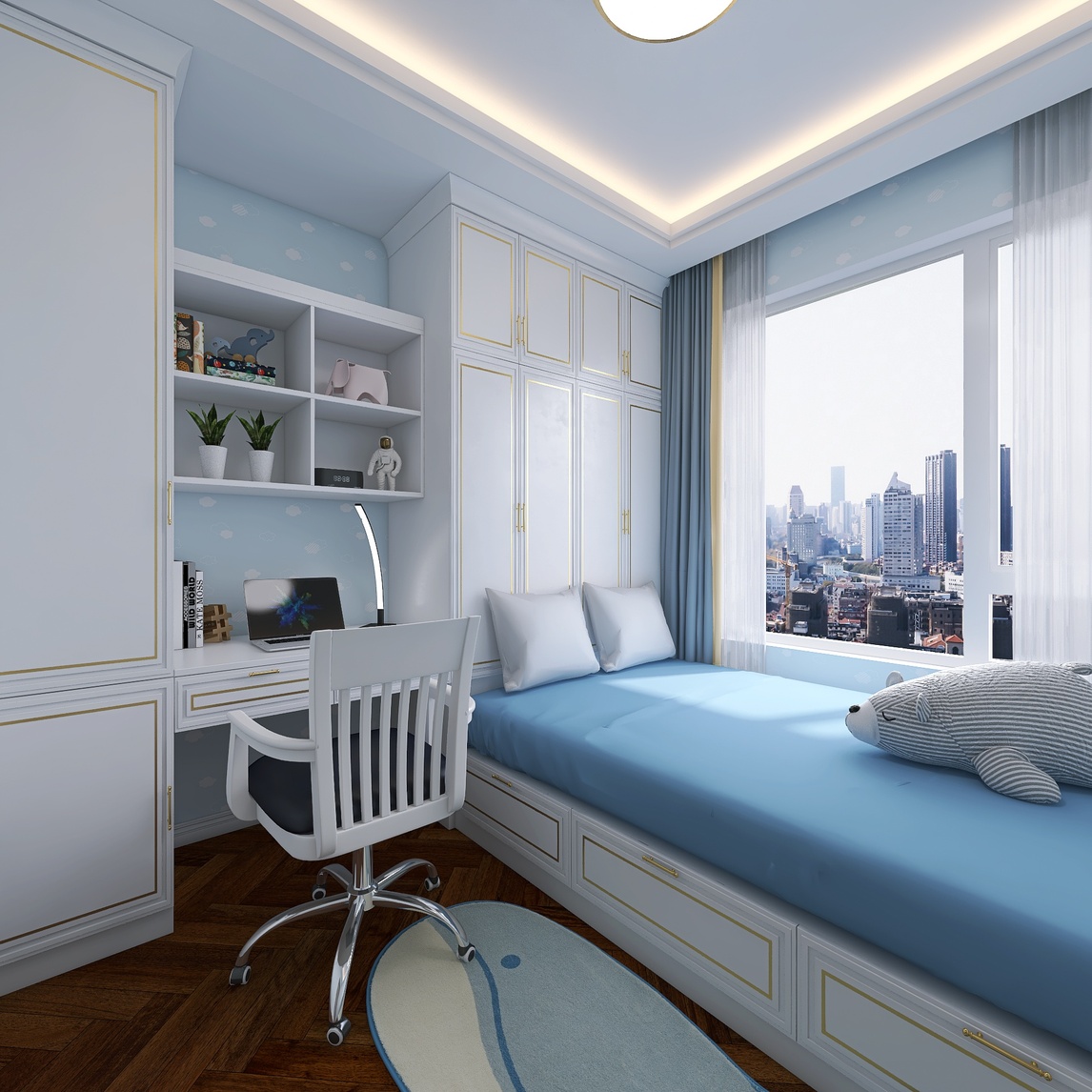 儿童房对孩子的意义,不仅仅是睡觉的地方,还是属于他们最温暖的小天地,记录着他们成长路上的欢乐时光。量身定制的儿童房释放更多收纳空间,可以放书本或玩具,随拿随放,美观与功能并存!