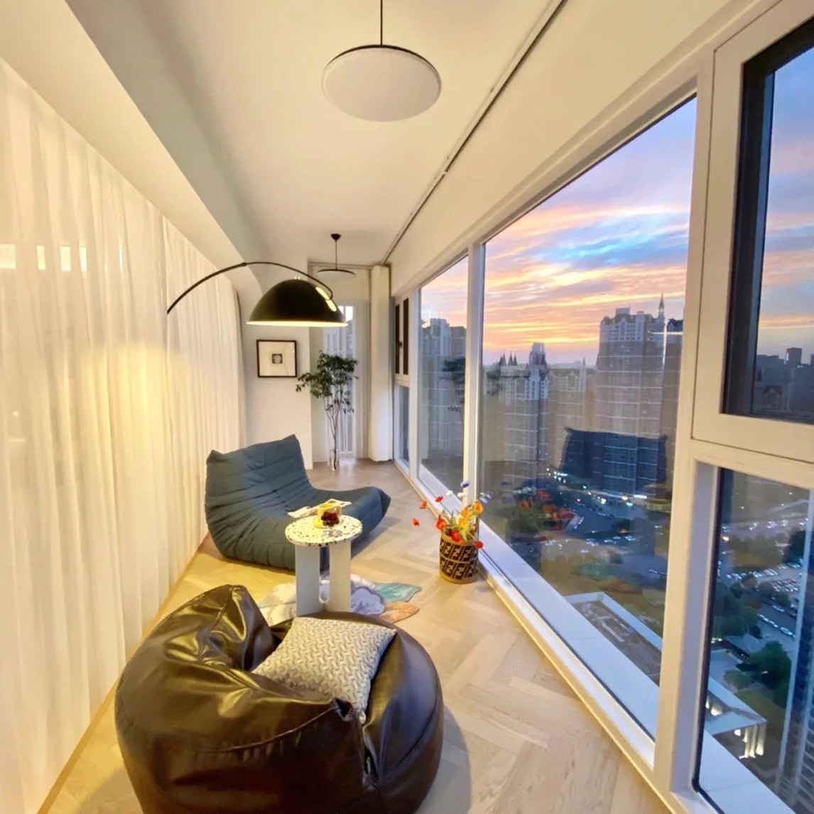 每个人对阳台的衡量不一样,在熊熊看来,阳台是一个家庭的眼。没有什么比眼睛更重要了,所以我才用了轻奢风夹杂着极简风,显得高贵品质,而又不奢侈繁琐。落地窗一定要装,高层窗外真的巨美。豆包沙发设计可以满足你...展开