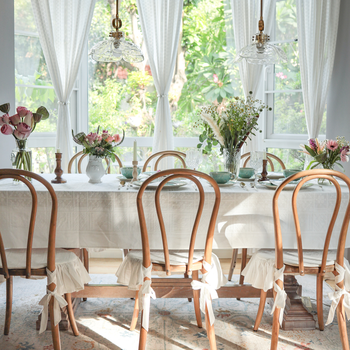 除了布置一张美美的餐桌以外,餐椅也需要被好好打扮一番哦。 款式表面精致的绣花工艺饱满有质感,荷叶花边设计,灵动又浪漫,普通餐椅也能美成“仙女”的宝座。 有进口防污黑科技的加身,让白色的座椅套也能更好打...展开