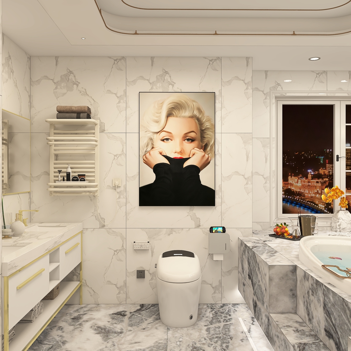 轻奢灰白色卫生间,采用最近流行的水墨纹大理石,整体质感更加高级,搭配白色洗漱台,整体格外的美观大方。