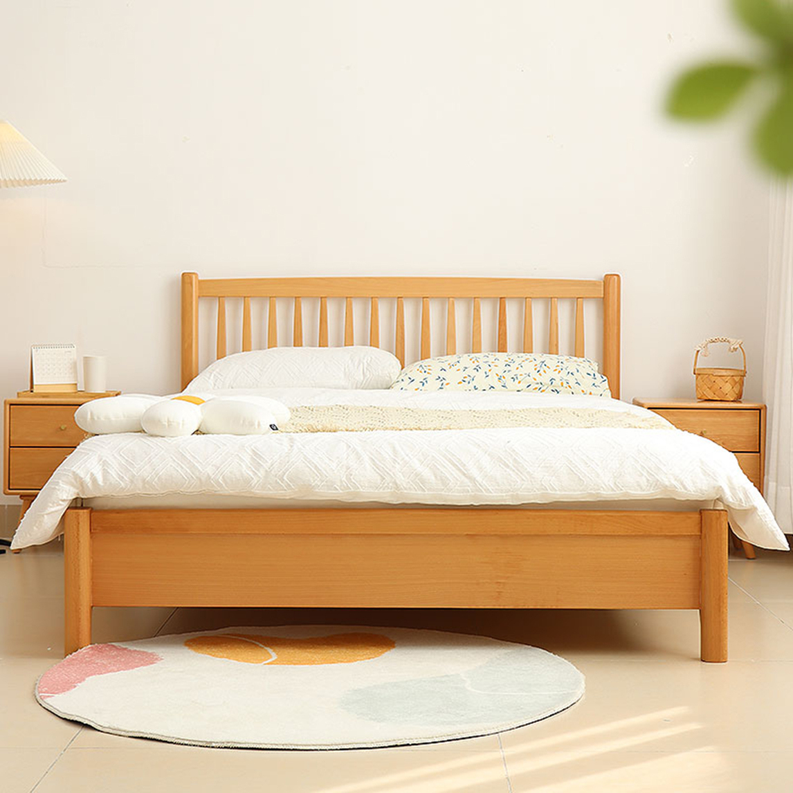 实木床+圆地毯,有趣的装饰风格