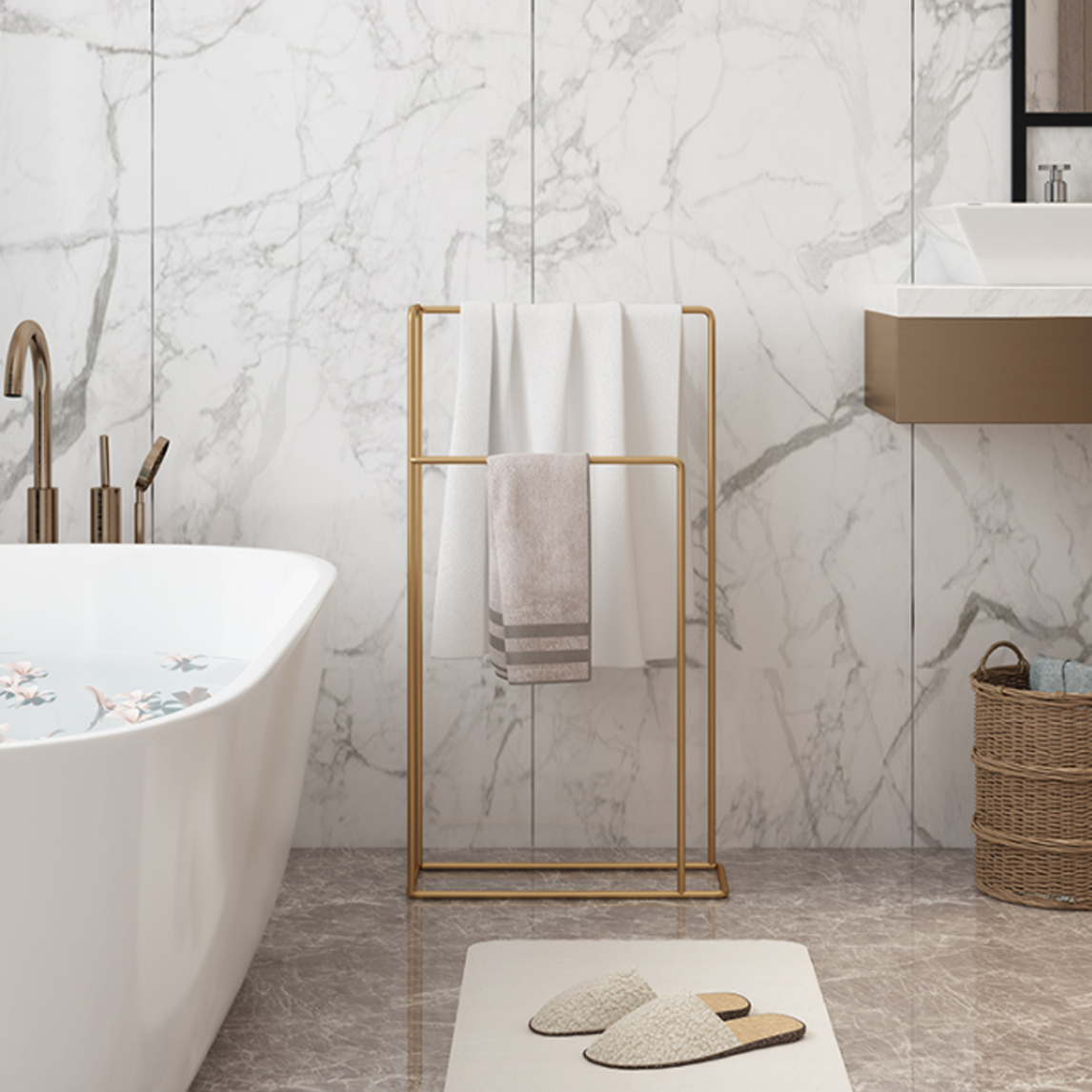 轻奢简单的展品,合理利用浴室空间,可根据自己的需求将毛巾等物品挂放在方便的地方,展现不一样的艺术美感。