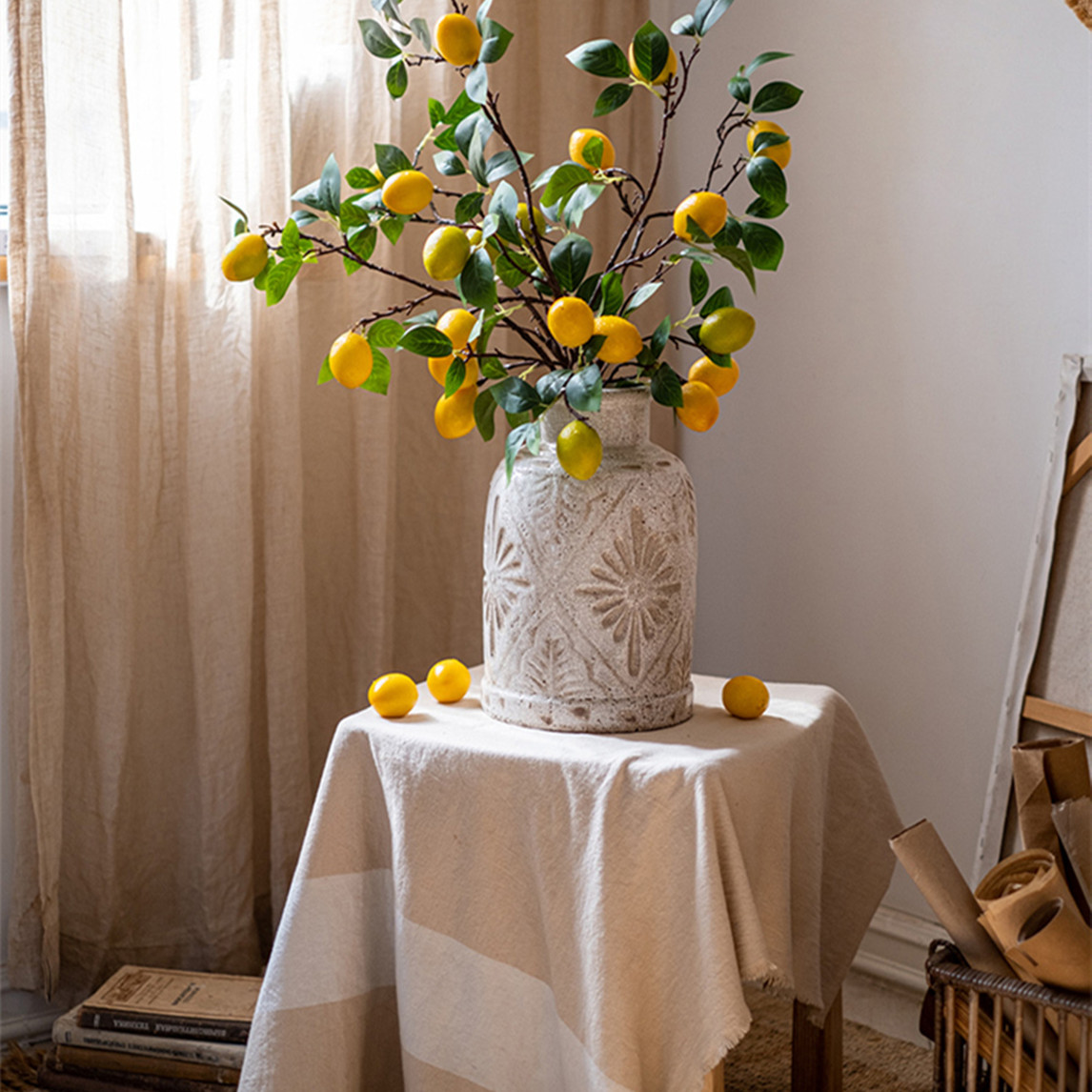 仿真柠檬果枝,深绿枝叶,果实饱满,一抹金黄非常的诱人,彰显活力,装点着空间,不用打理,保持着硕果累累,超有感觉。