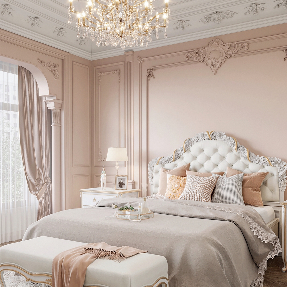 精致的法式雕花床也是古典感满满,搭配蕾丝花边四件套,仙女感就很浓啦。 还有精致的梳妆台,小仙女最爱的角落。