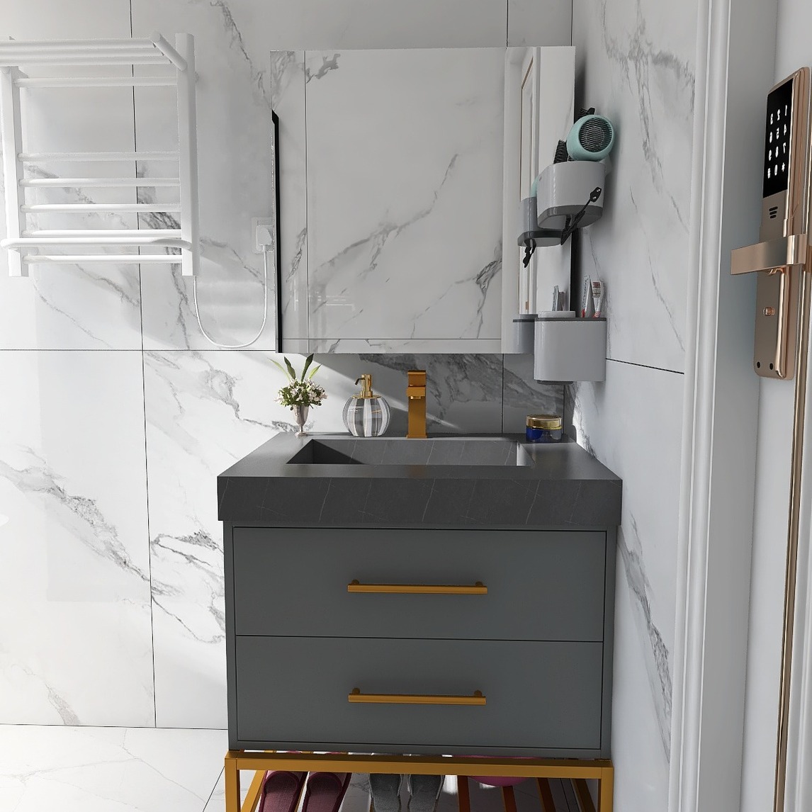 简单的设计搭配上金色把手的点缀,简约中带点轻奢,白金的设计,不高调也不庸俗,放在浴室中恰到好处。 板材防水防潮,方便清洁打理,大容量的储物,让浴室保持干净整洁。