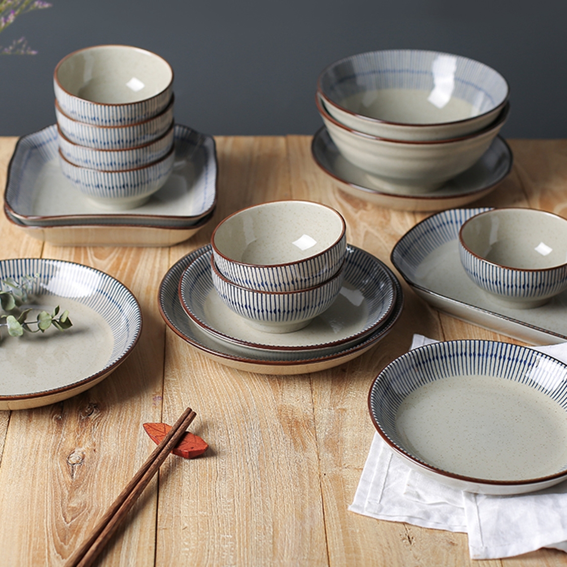 这是一组日式风格的餐具,复古气息很有韵味,适合搭配手绘釉下彩的工艺,入口安心,可进微波,加热方便,手工打磨上釉,随意的芝麻釉点,增添了餐具的做旧感,多种器型可以选择,日常吃饭,摆盘或是烘焙都一应俱全。