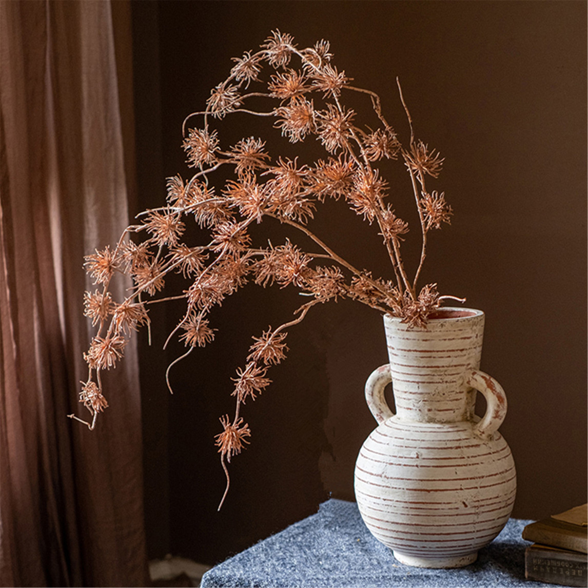 仿真花苍黎秋色,做工精细,复古风格精致典雅。专业制花面料,手感逼真,无论是放在客厅还是阳台,都能完美地衬托生活的温馨。