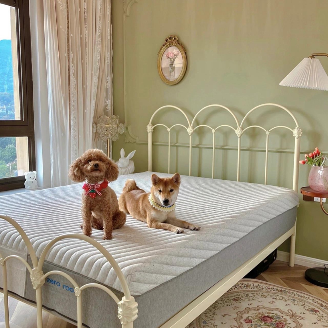 铁艺床的话要配厚实的床垫哦,这个床垫足足有30cm厚,支撑力很足,材质又很柔软,软乎乎的狗子一直赖在上面不走,而且它家是365天试睡哦,一起好好睡觉