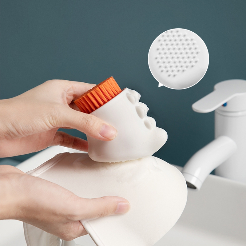 这款洗衣刷采用了柔软的硅胶作为卡通恐龙的外形设计,内里搭配柔密的多重毛刷,形象上充满了童趣。它的清洁洗刷能力相当强大,不仅可以清洗各类污垢衣物还能洗刷小朋友的各类玩具,一刷多用,家中必备。