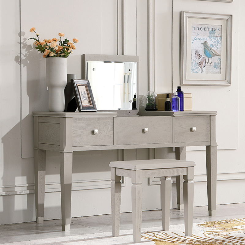 装修时,选择法式风格的到,从内到外都凸显着精致感。法式拉扣设计的雕花沙发,简约实木法式化妆台和斗柜,太让人喜欢了。