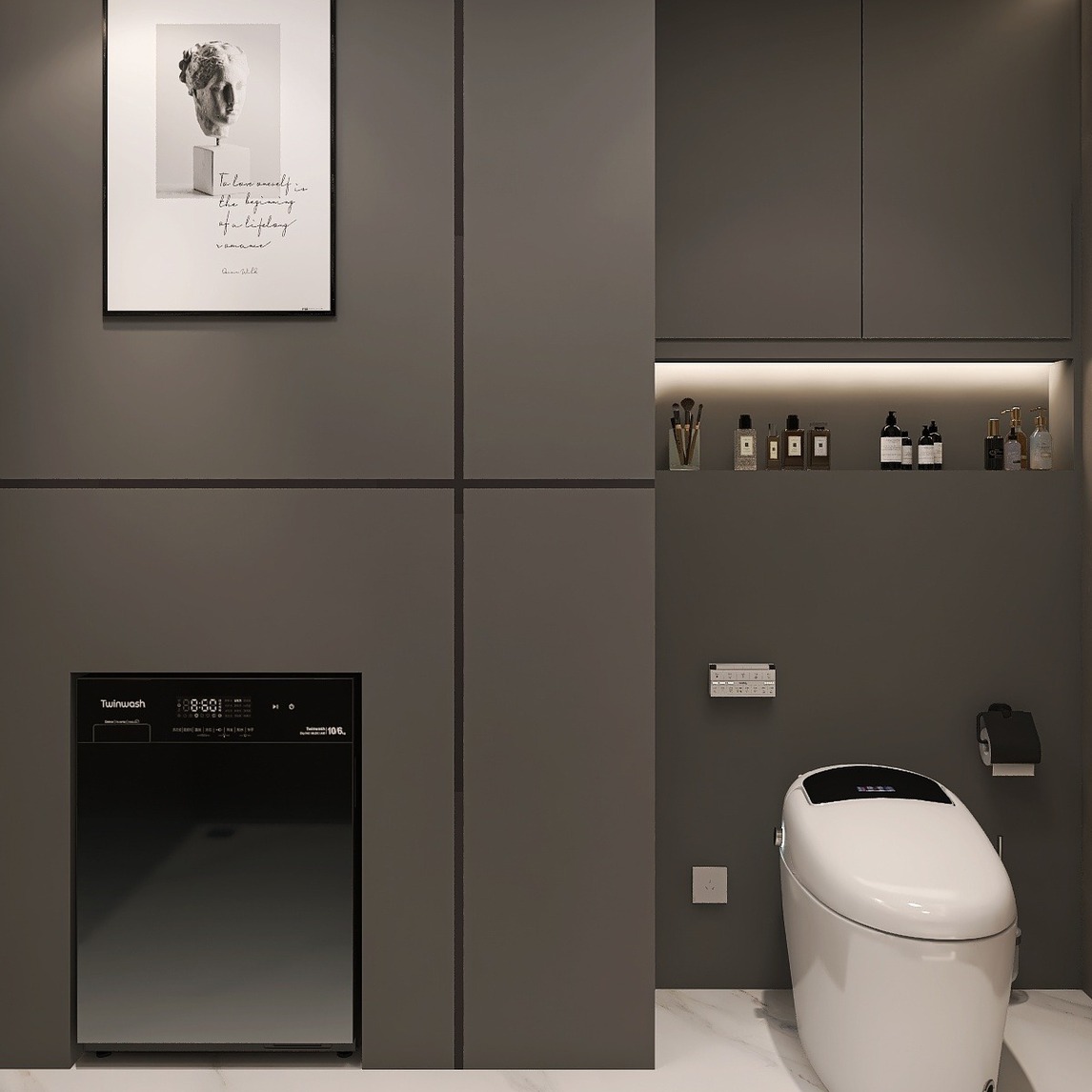 浴室整体使用了一种介于灰色与棕色之间的色调,地面使用了大理石无缝砖,搭配上壁龛,看起来既轻奢又简洁~ 浴室柜是墙排式的,洗漱区看起来整洁又干净,悬挂式的浴室柜打扫起来也是非常方便的,半面圆镜既扩大了...展开