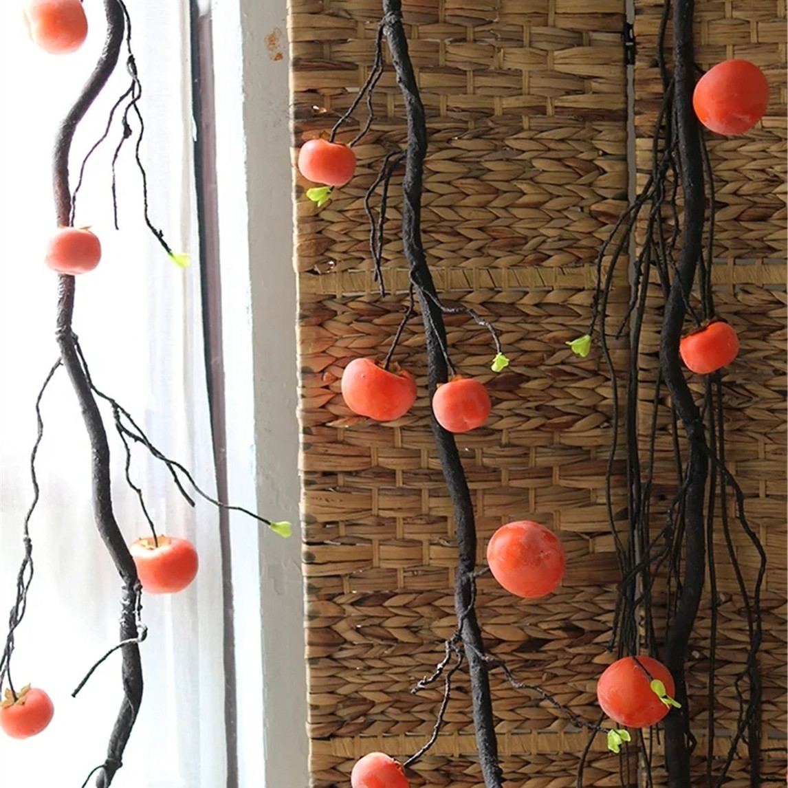 仿真藤条柿子树枝,缠绕的藤蔓很适合用来造景,艳艳的柿子,透露着生机勃勃的气息,这般秋韵,让人沉迷不已。