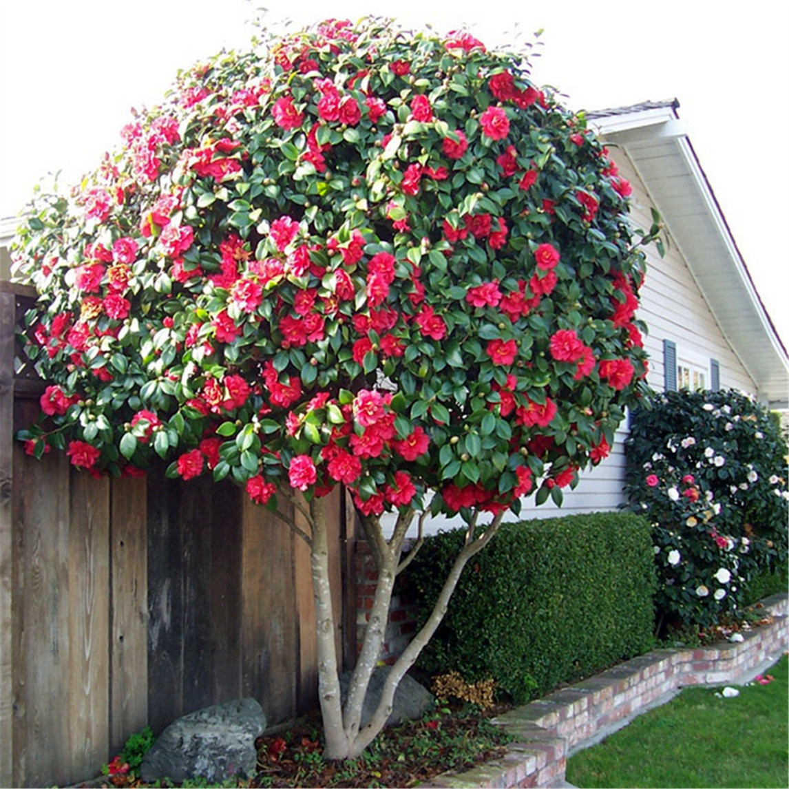 庭院耐寒红色茶花树苗,室外栽植四季常青。耐寒的植物冬天开花格外美丽,冰封雪飘气傲霜雪,树姿优美,树叶浓茂。