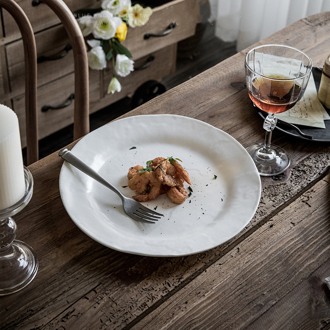 不规则10.5英寸大盘子,白色搭配纹路点缀,增加复古美感。哑光色釉工艺,简约却不简单,用来摆盘很棒,仪式感满满。