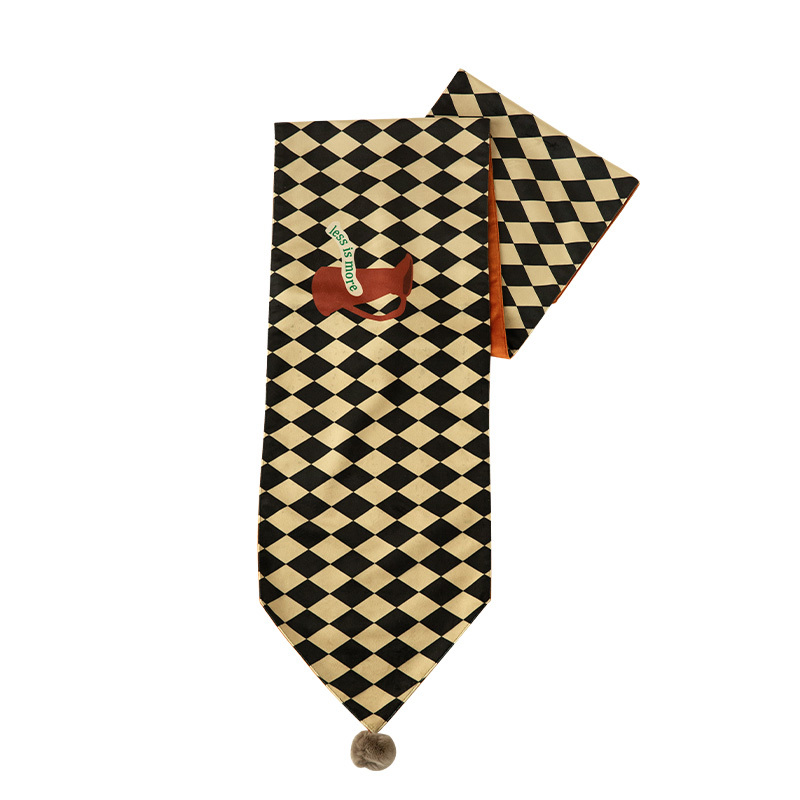 实木格栅造型的桌腿和椭圆形桌面,六个人就餐也完全没问题,并且不会妨碍人通过,桌旗高级的绒布质地,经典的棋盘格图案,颜值超高又不会喧宾夺主,黑色餐桌最佳搭配。