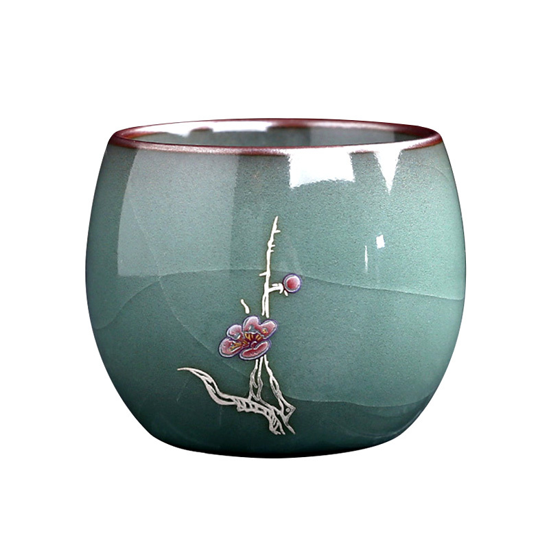 高档陶瓷功夫茶杯,念君杯,月白色釉色透亮,杯身塑画着盼望远方,思念如意郎君的少女,寄托一种思念之情,搭配礼盒,送礼有面子。