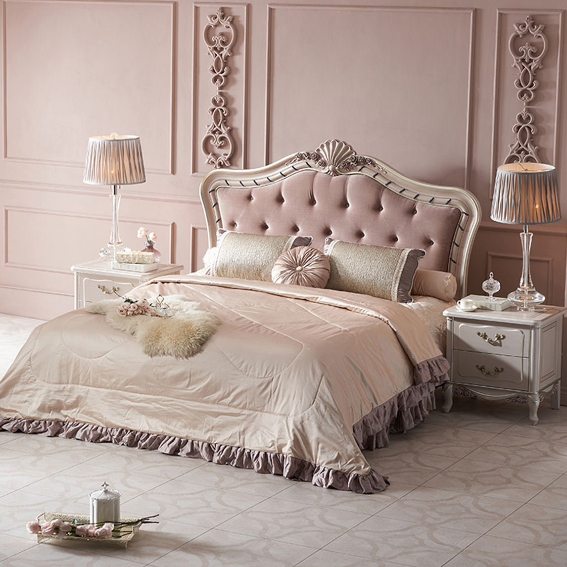 双人床床头立体深雕花簇,源于法式浪漫的精美繁复的雕花,被深深注入了艺术气息,立体而灵动。柔美的曲线设计,犹如欧洲古典建筑的线条与色彩搭配,将宫廷法式的美表达得淋漓尽致。