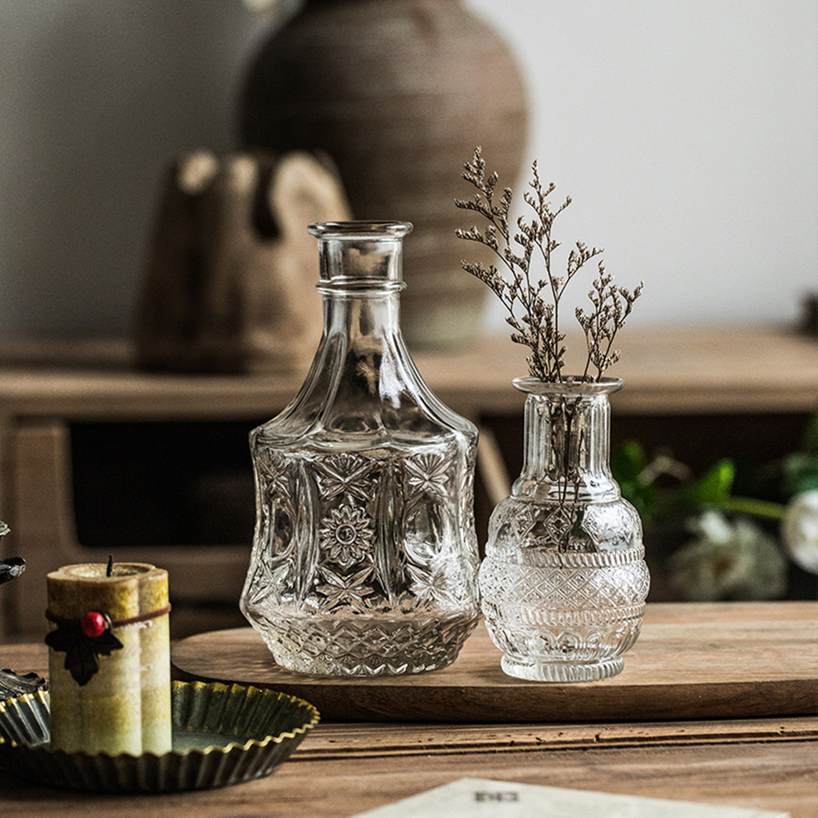 浮雕玻璃瓶,精致小巧,小瓶口可以插一两只花,带点禅意,带点清晰,点缀让家更温馨,花瓶在晚上灯光照射下更通透!