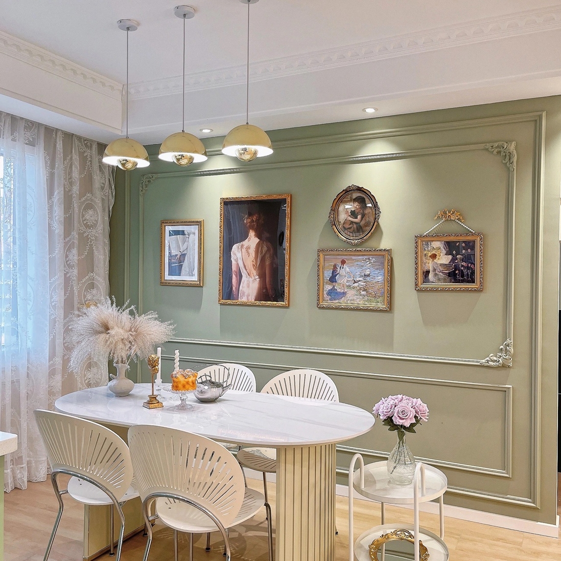 这颜值和设计,谁看了都忍不住夸赞几句。厨房半开放设计,餐厅就在厨房旁边,整体风格大气轻奢,颜值天花板说的就是它了吧。