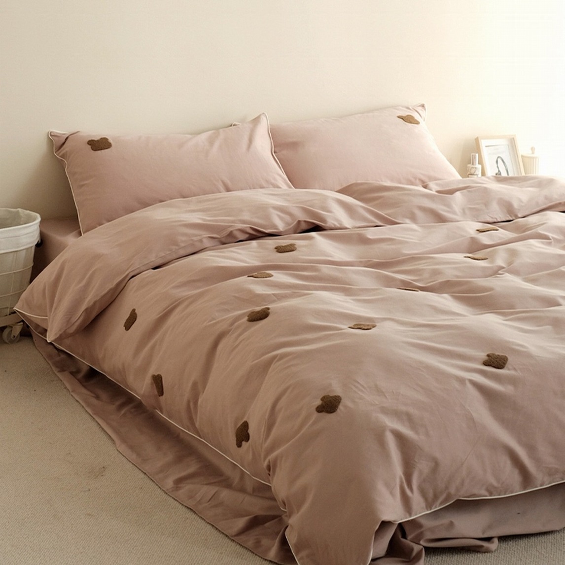 全棉磨毛床上四件套小熊毛巾绣床单床笠款