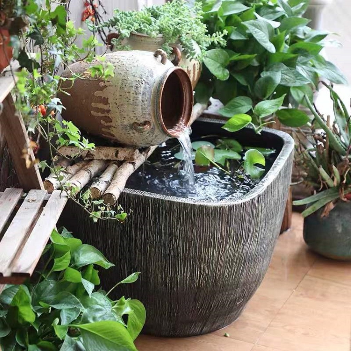 流水缸,经典简约造型,涓涓流水蕴藏着雅致的音律,给你带来豁达的愉悦心情,净化空气,调节湿度,让您远离干燥空气。