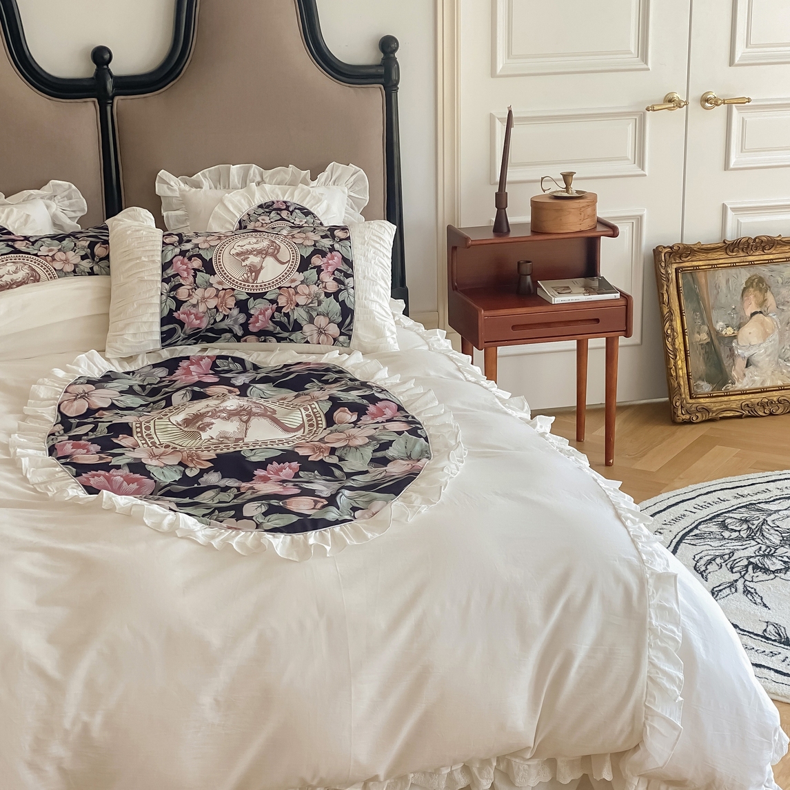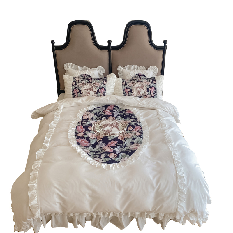 公主风少女生活的喜爱,在少女卧室里搭配一款公主风格,精美刺绣,荷叶花边的全棉床品,更能营造温馨,浪漫,舒适生活空间。