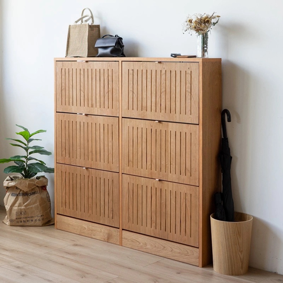 入户翻斗鞋柜,解决了一切玄关入户的问题 实木的翻斗鞋柜厚度仅20厘米,既美观又不占空间。 虽然很薄,但是却拥有超大容量,可以同时容纳20双鞋,轻松解决拥挤问题~ 鞋柜上方还能放置各种小物品、钥匙,挂置...展开