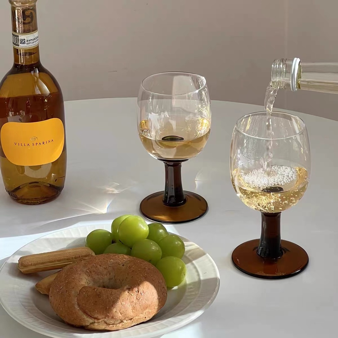圆球切面的几何杯体,加粗的手柄,复古又俏皮的风格,灵感来源于50年代的古董玻璃杯,优质玻璃打造 ,仿佛置身于巴黎午夜的小酒馆。