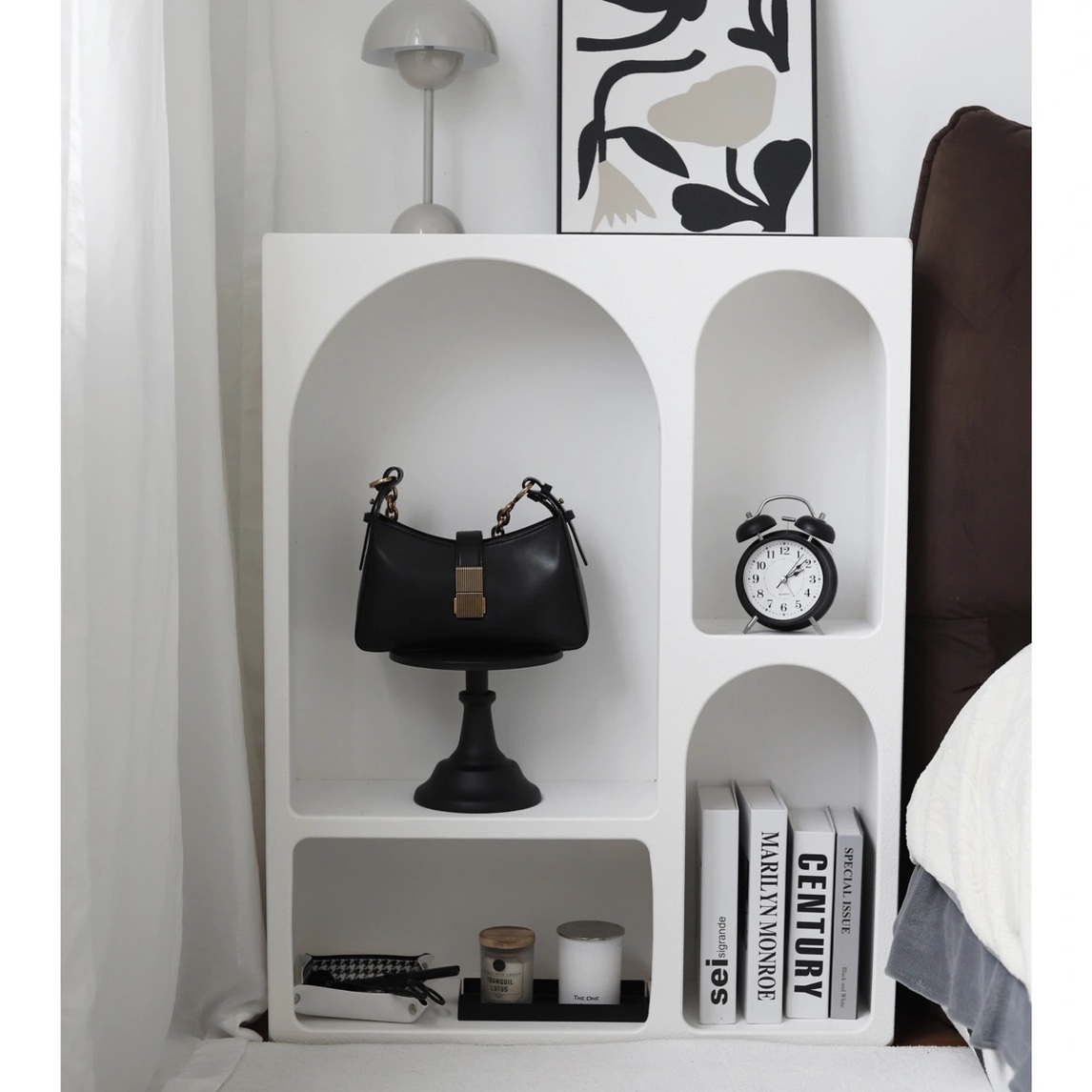 相比一板一眼的床头柜,洞穴柜的设计稿更强,让原本单调沉闷的空间多了几分“姿色”。 它美观且实用,收纳、储物也是两不误,无论放什么都好美~ 让床头也能氛围感十足~