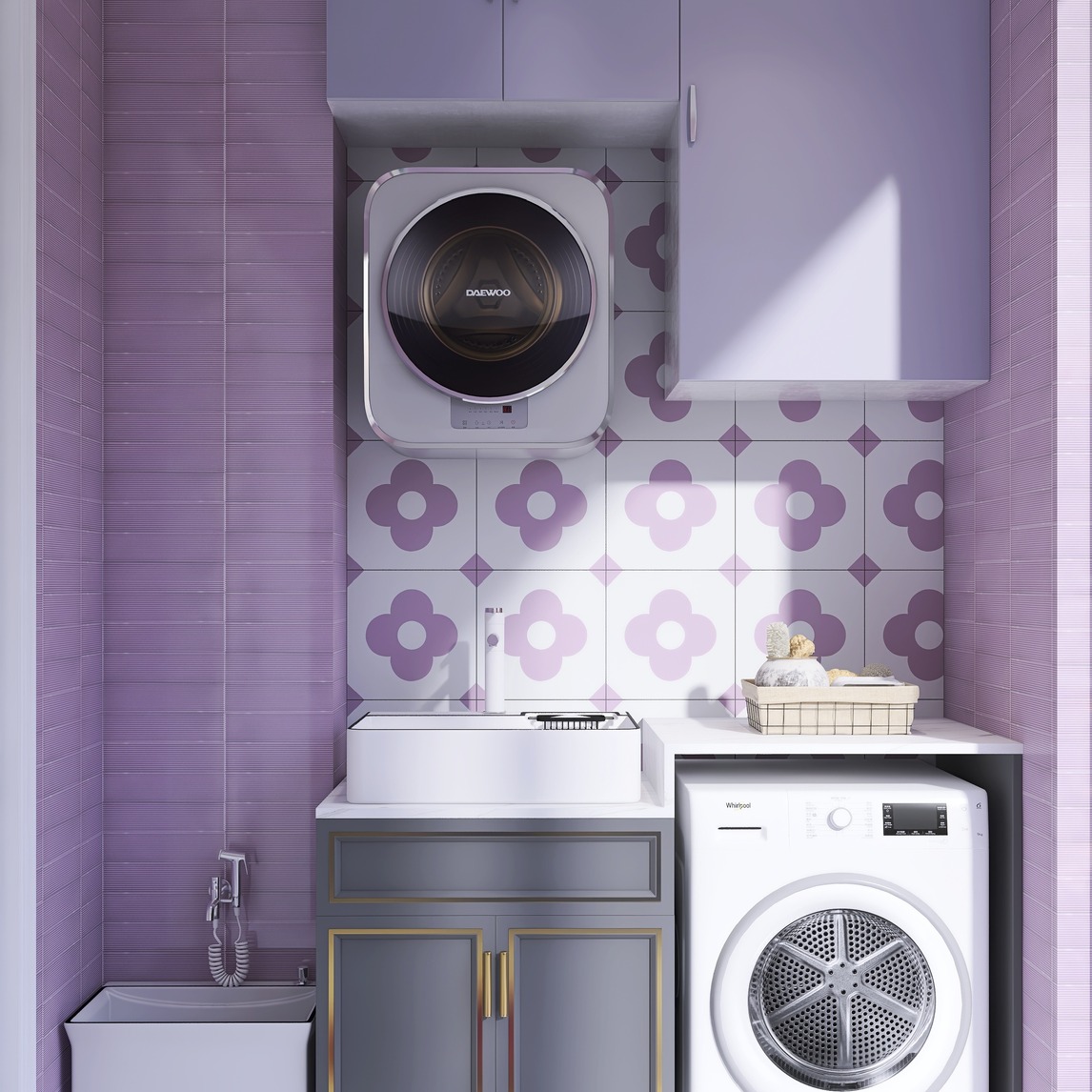 梦幻紫的动漫空间~ 高冷的色调却让人有一种不愿意踏出的浪漫 7.21平方米,在聒噪的世界里有个自己安静的小世界 预留排水口2个,冷热进水口1处 阳台柜与洗衣机结合,洗衣洗涤剂收纳两不误 台面和台盆...展开