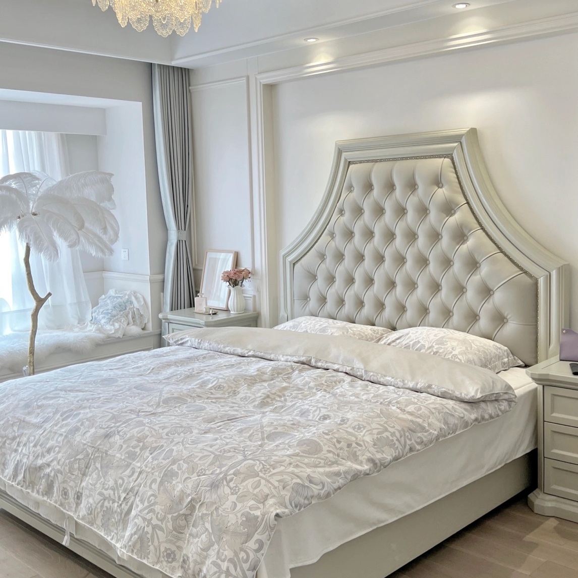 提花四件套,清新淡雅,面料也很舒服,搭配水晶吊灯,浪漫也很高级!家不必太惊艳,只需要温馨温暖就好!!!