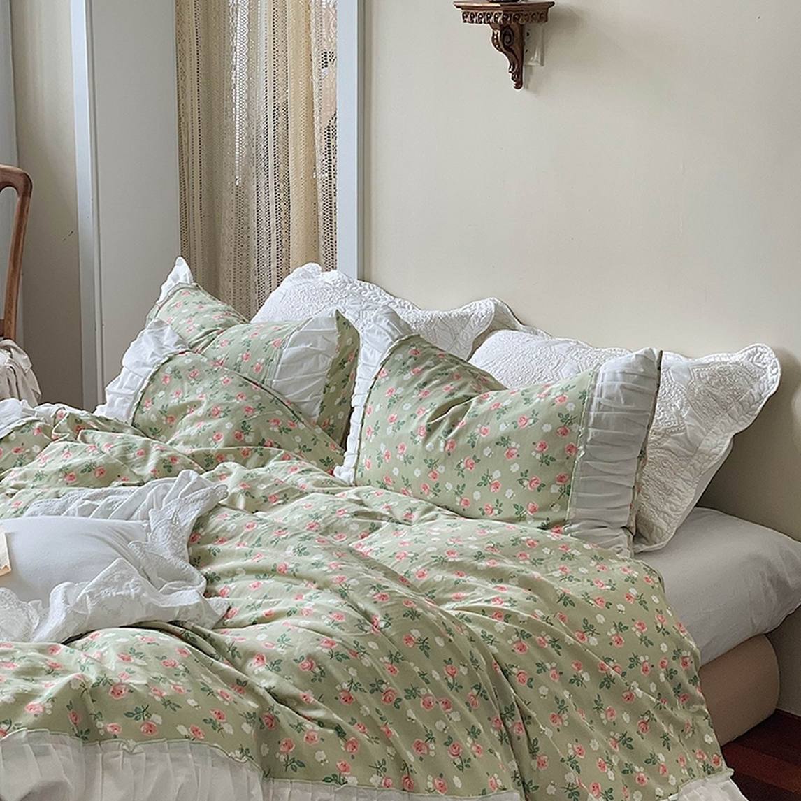 法式清新优雅浪漫的花朵印着生活的美好向往,褪去一天的疲惫,带给你香甜的美梦,让你幸福满满,爱上自己的卧室爱上自己的家。