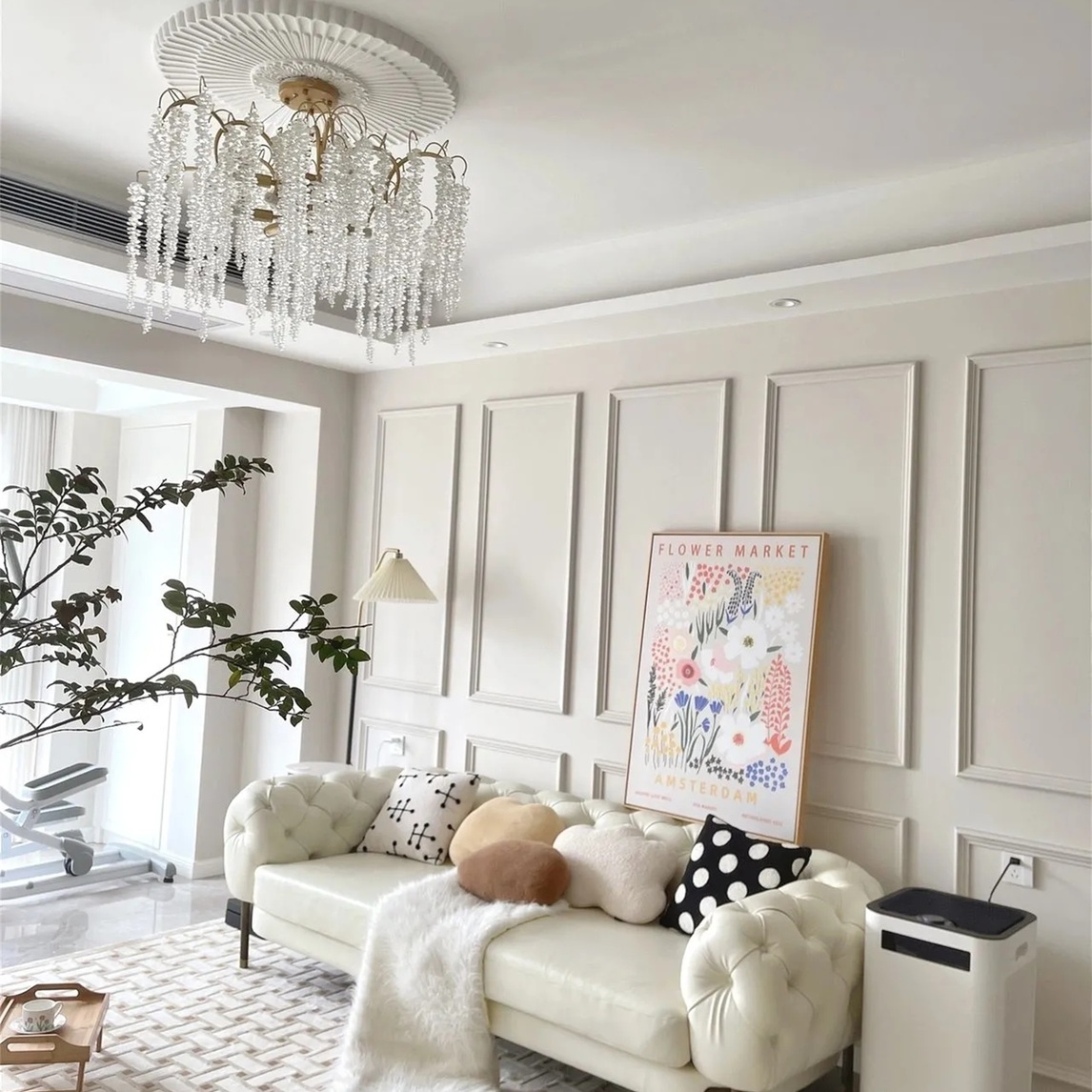 想要浪漫又想要舒适,那不如看看当下流行的奶油风+法式碰撞的火花吧~ 整体的色调都是暖暖的,色彩感觉很棒,奶白色的墙搭配奶白色的玄关柜和奶白色的沙发,整体感觉十分统一,小清新装饰画,好似点睛之笔,让整...展开