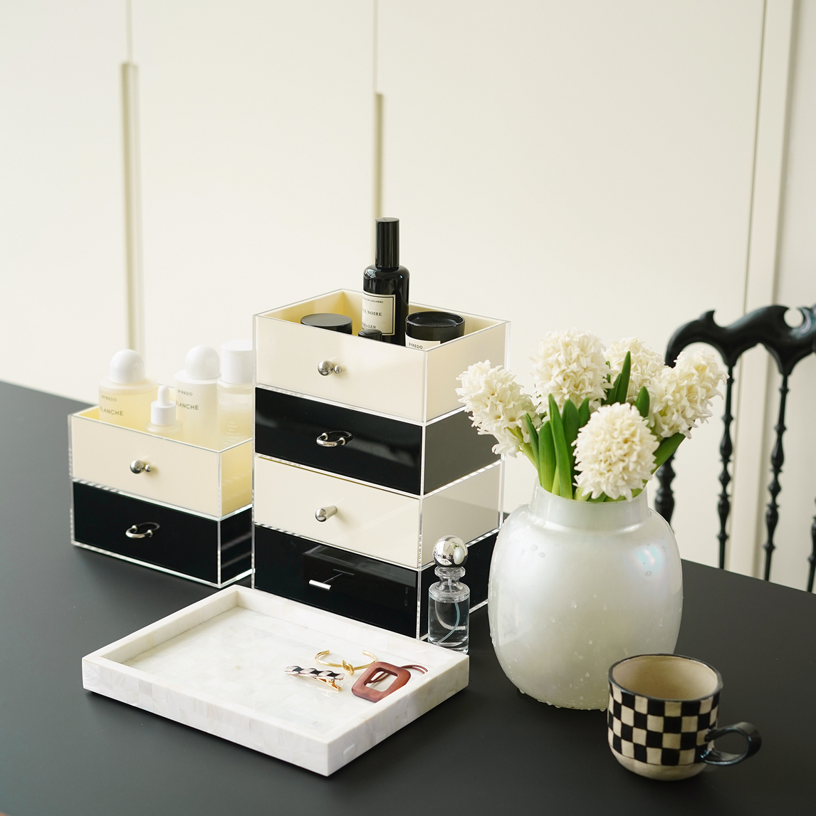 虽然纯透明的收纳盒有着舒服干净的外观优势,但我总觉得还是蛮考验收纳物品的颜值!而在开放空间,我更青睐非透明的收纳工具。当然,颜色也要保持舒服干净,不能太花里胡哨!
