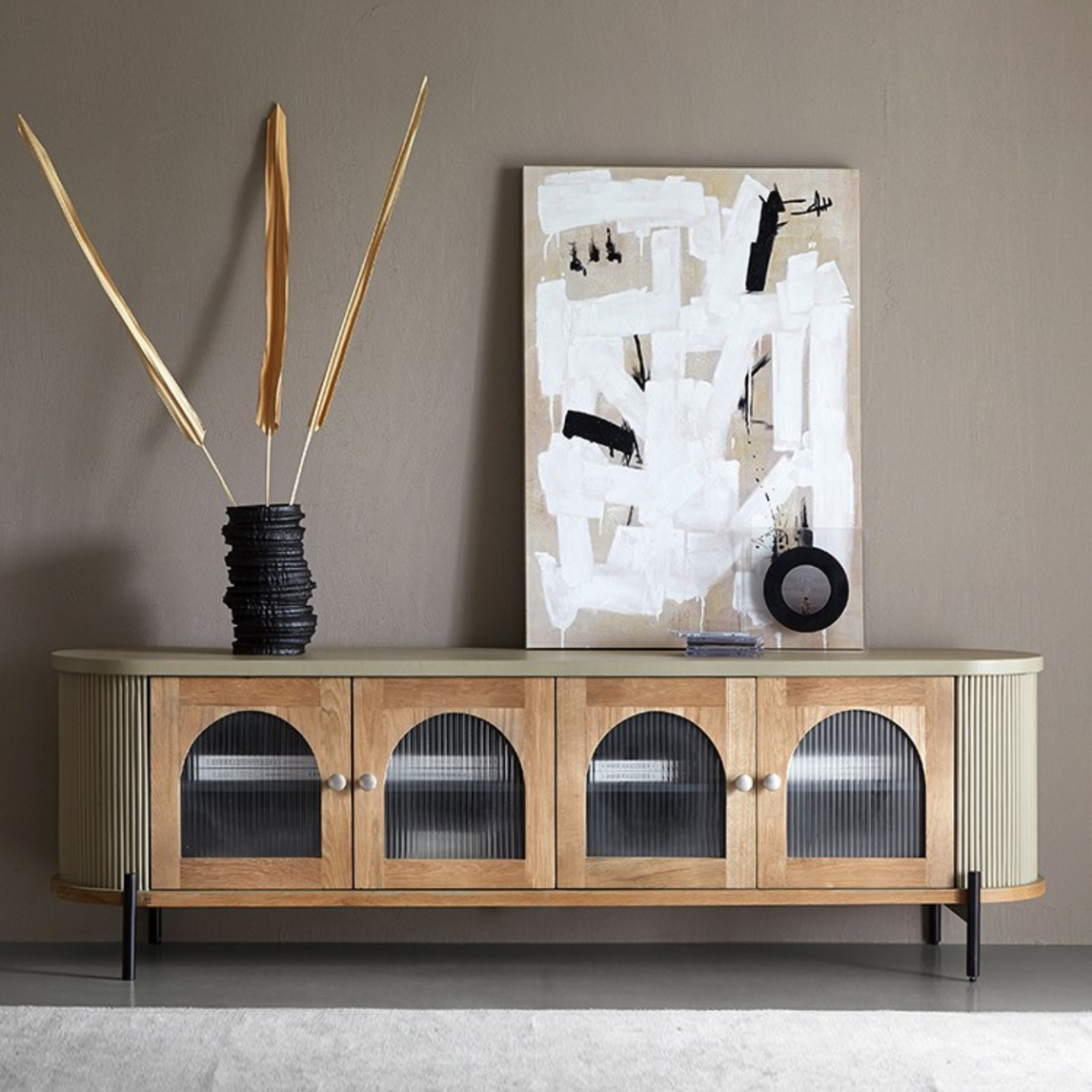 复古风在居室中的呈现更具简约大方美感。用木质电视柜作为搭配,更有复古派摆件进行装饰和点缀,呈现出客厅气质优雅的复古文艺调。