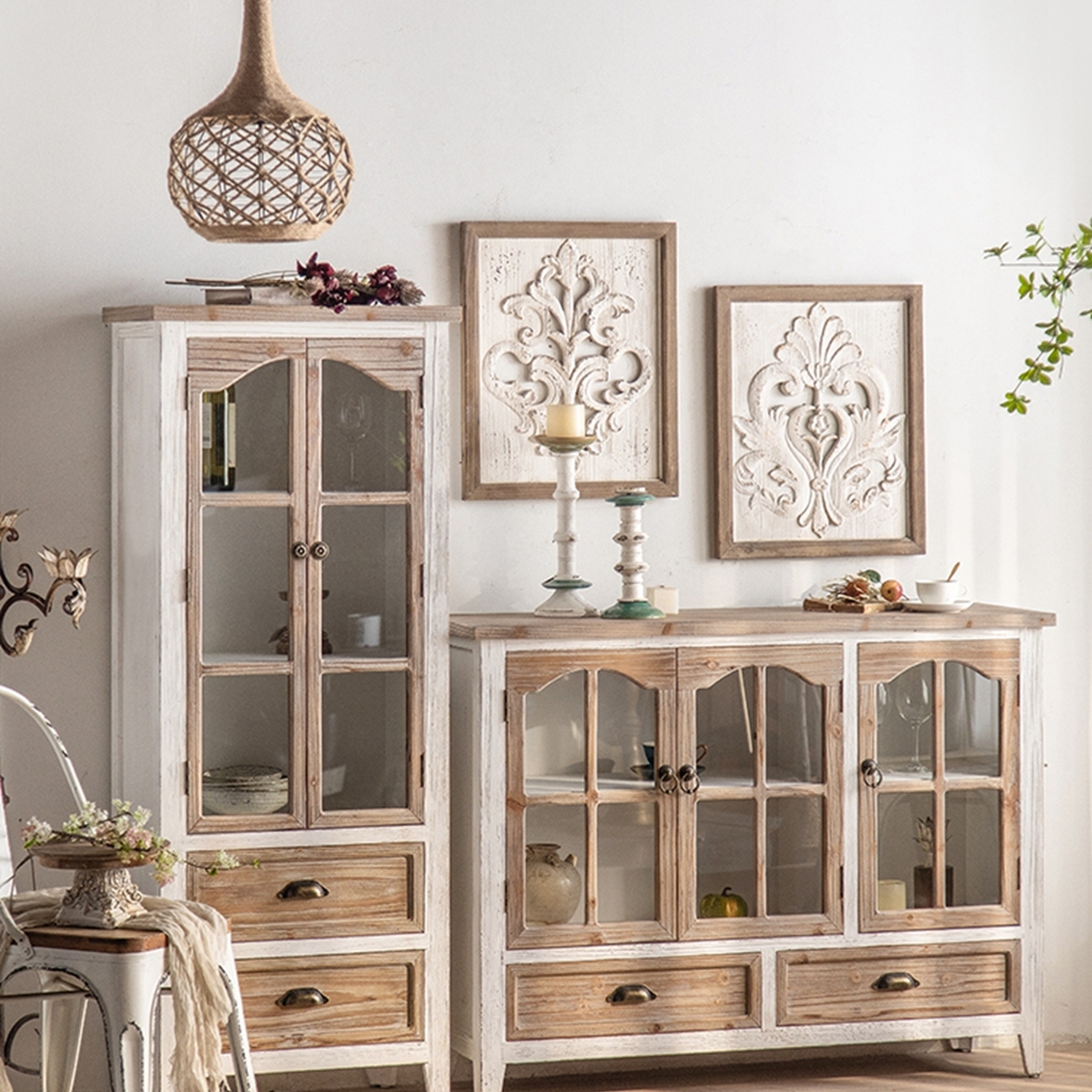 复古花纹、精美雕刻、名宿格调,法式乡村餐边柜,收纳设计精致美观,能满足日常需求,复古格调,感受岁月留下的痕迹。