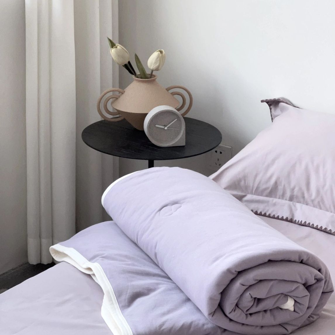 一床软糯又舒适的夏凉被绝对是夏季提升幸福感的必备神器!再配上温柔的香芋紫,直接就能俘获你的芳心~ 针织棉的面料舒适又柔软,打理起来也超级方便,可以直接水洗哦~
