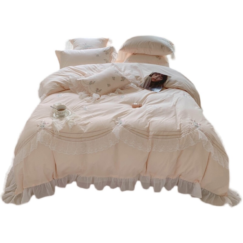 法式公主风纯棉水洗棉四件套全棉蕾丝花边