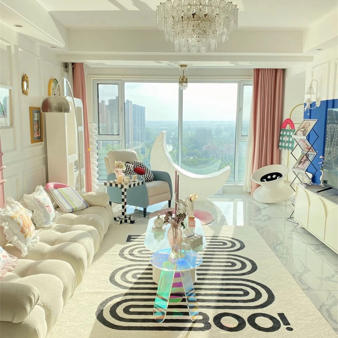 充满法式浪漫感的客厅,每处细节都透露着精致:晶莹剔透的水晶吊灯、经典简约的模块沙发、娇艳欲滴的沙发椅、个性时尚的洞穴柜,给人带来无尽的遐想~