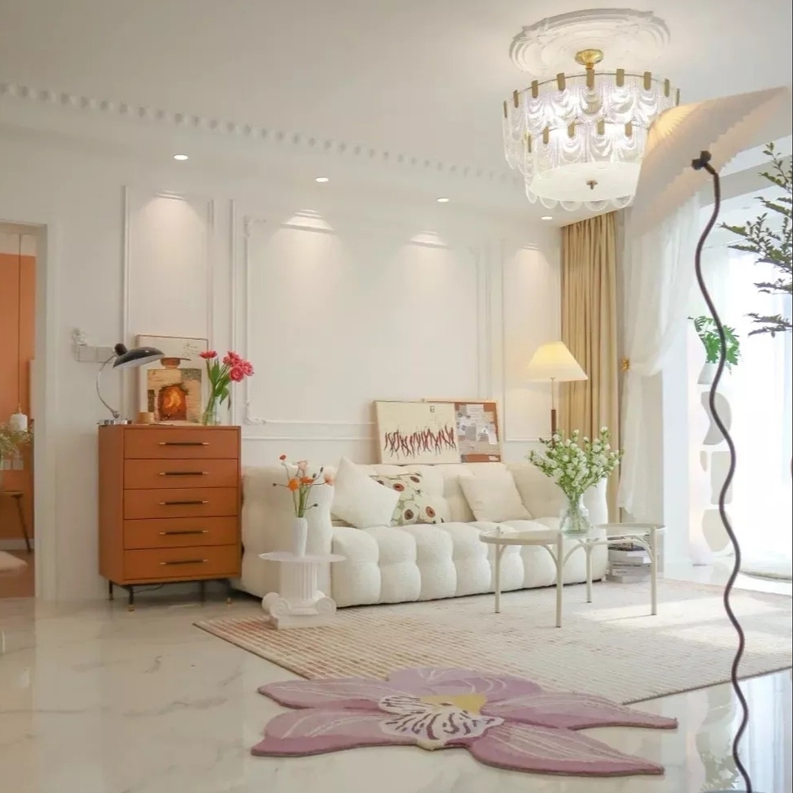 本案是一套面积为135平方米的三居室,屋主是刚从国外留学回来的90后小姐姐,有着多元化的教育背景,喜欢白色,希望家是一个放松身心的地方,不拘束。所以在设计上运用法式的基调,整体以白色浅色为主,搭配精致...展开