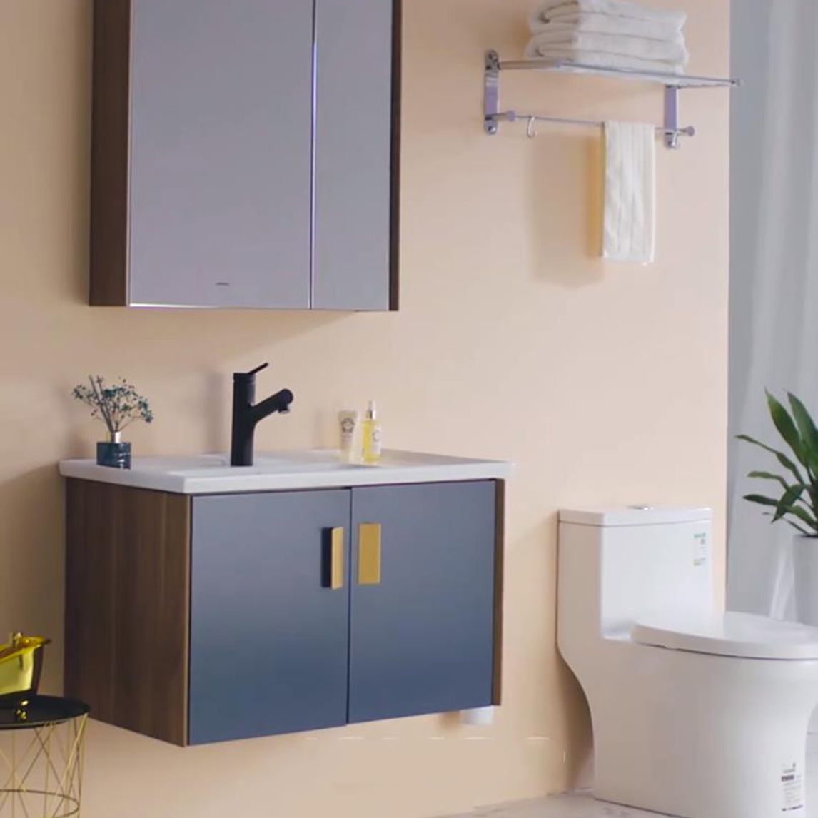 卫生间采用轻奢风格设计,粉色墙砖搭配白色地板,蓝灰色的浴室柜,打造柔和素净的空间质感。浴室柜选择壁挂式结构,相比传统落地式,更有种轻盈简洁的美感, 散发出质朴柔和的气息。