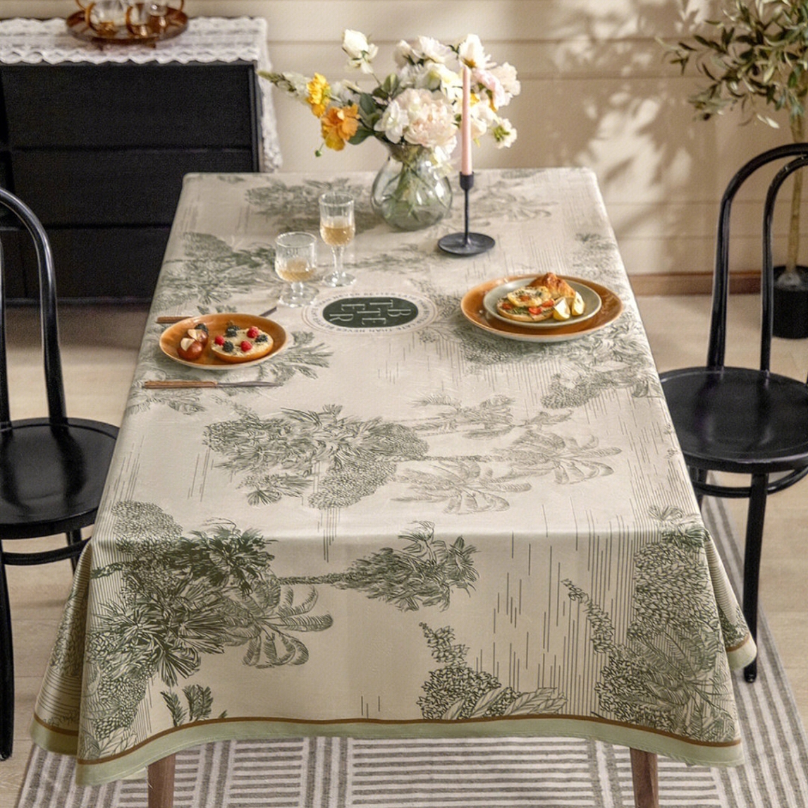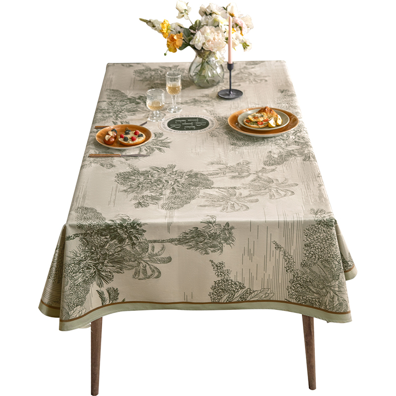 远看好似衣服山水画,桌布一铺就感觉置身于浪漫清新的法式庄园里。而且低饱和度的灰绿色,不会在视觉上过于抢眼,反而能给餐厅增添一抹典雅的法式韵味。