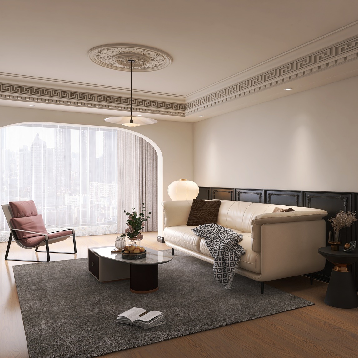 黑白极简+法式雕花的优雅浪漫沙发客厅
