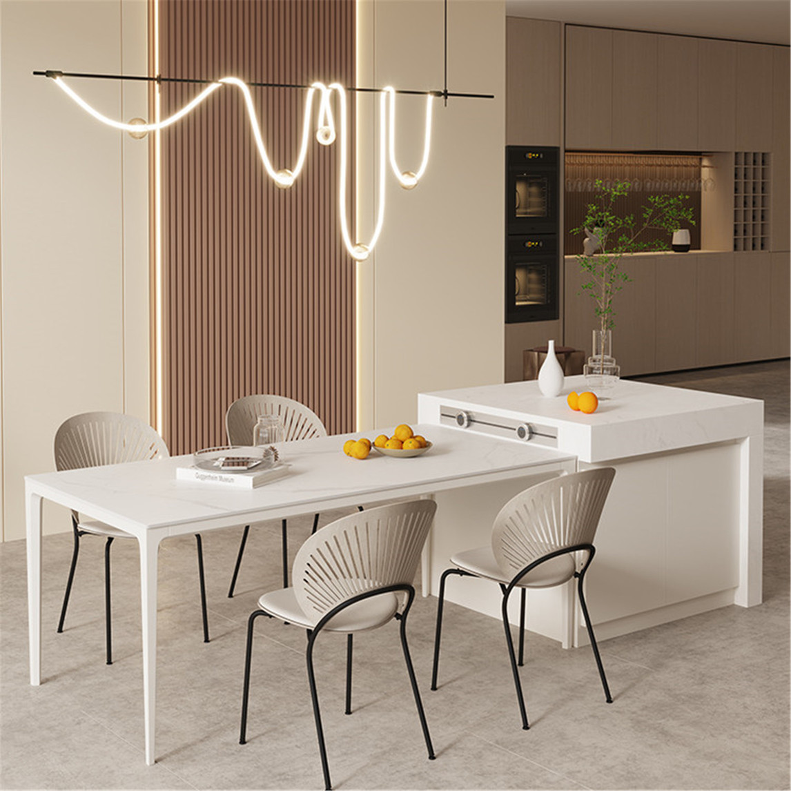 是岛台也是餐桌,还可以当休闲桌看书喝茶,成为整个厨房的活动中心。不同于传统枯燥乏味的封闭式厨房,在开放自由的空间下和家人交流互动,下厨就变成一件有趣的事。