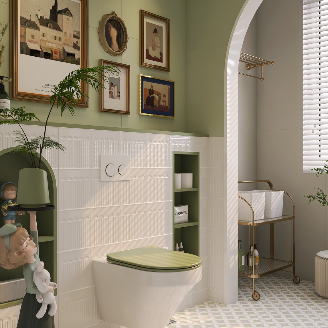 绿色复古风的卫生间!
