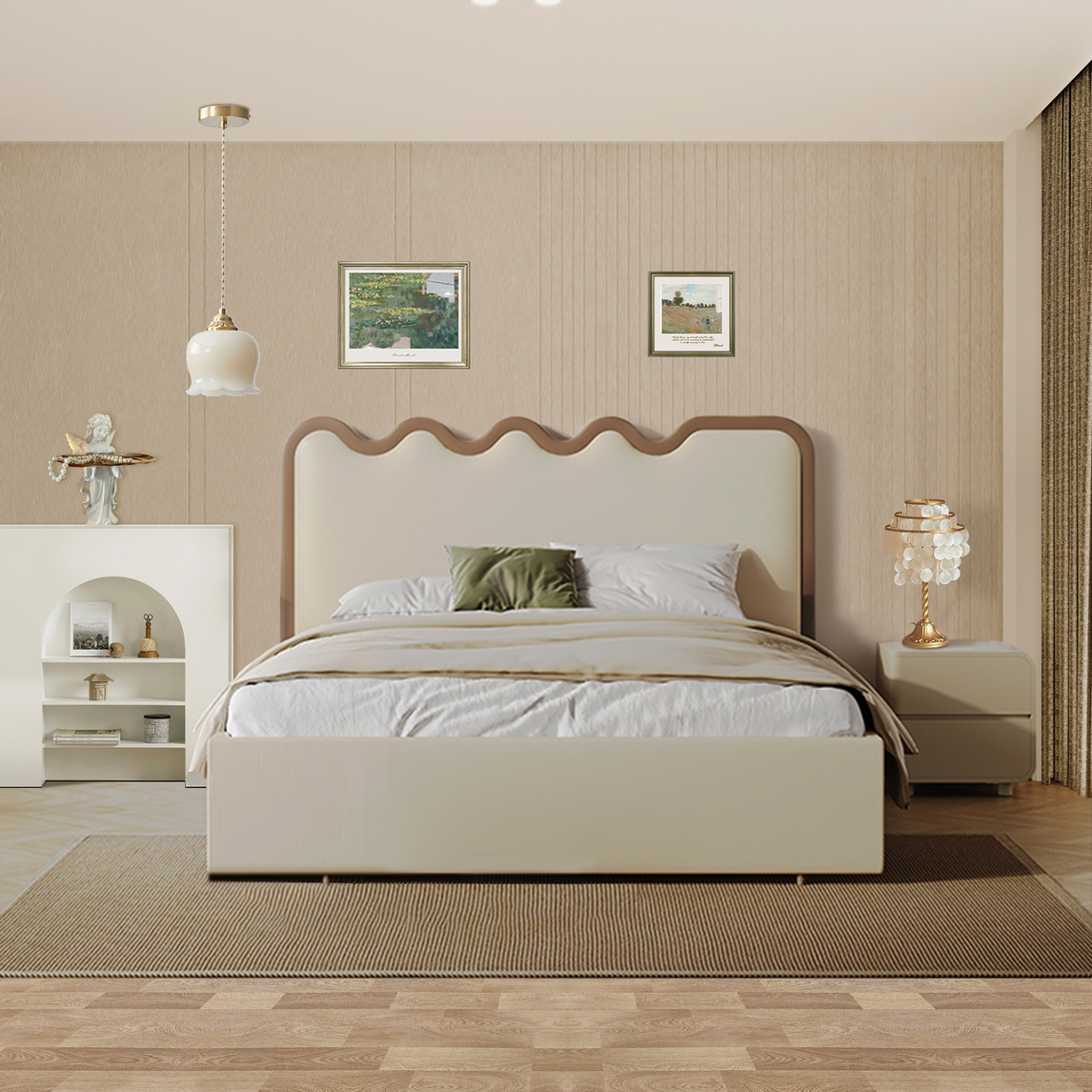 复古的光影之美,焦糖味儿的轻法式卧室,可不只是秋季的限定,床头的铃兰花吊灯使整个空间看起来充满了活力。