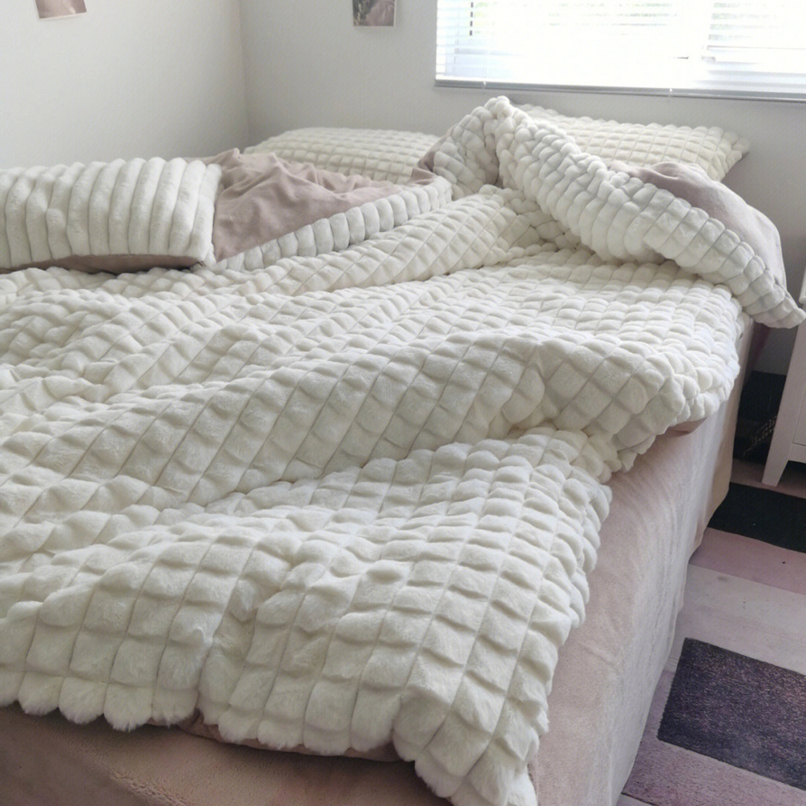 泡芙兔兔绒太软糯了吧!手感跟撸猫一样舒服!格子+奶呼呼的配色,仙里仙气的!而且兔兔绒+牛奶绒的设计,能循环蓄热!再也不怕冬天手脚冰凉啦!