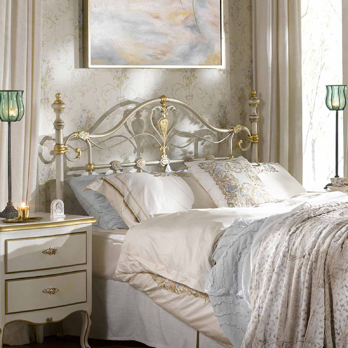 法式卧室,采用了铁艺的双人床,做旧作为家具传统工艺,其历史源远流长,做旧的家具,买来时不新,用久了也不旧,并且带着一份高级感,就好像它似乎一直以来就是家里的一员,而不会有那种崭新的家具用旧的破败感