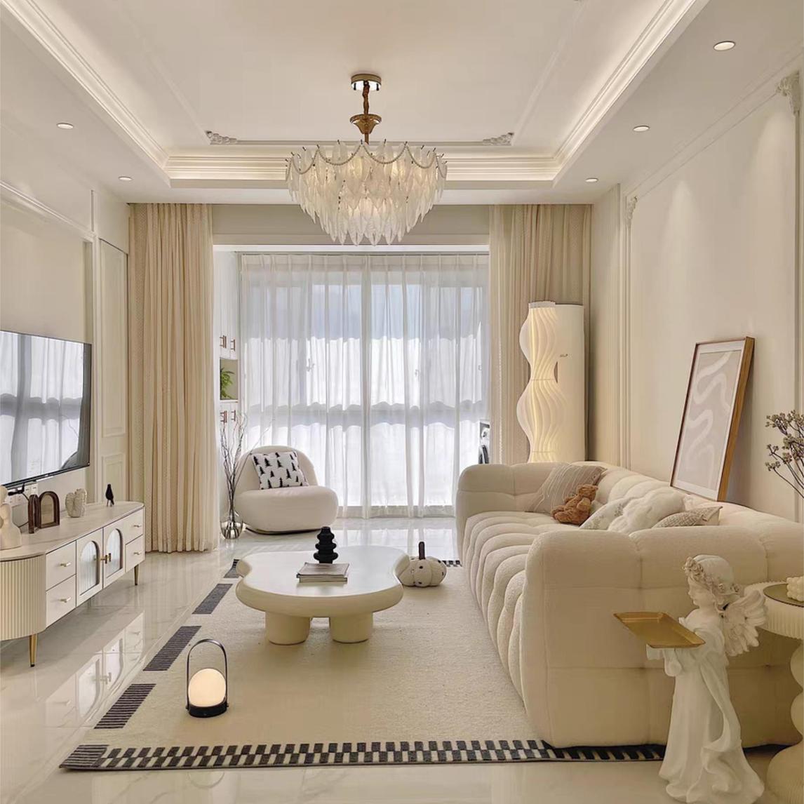 本案主体色调为奶油色,风格现代简约法式风格,奶油色系是浅淡的奶咖色,奶油色系是柔和的低饱和度配色风格,在米白色与奶咖色中间的一个色系,整体空间的硬装,简单干净直爽。