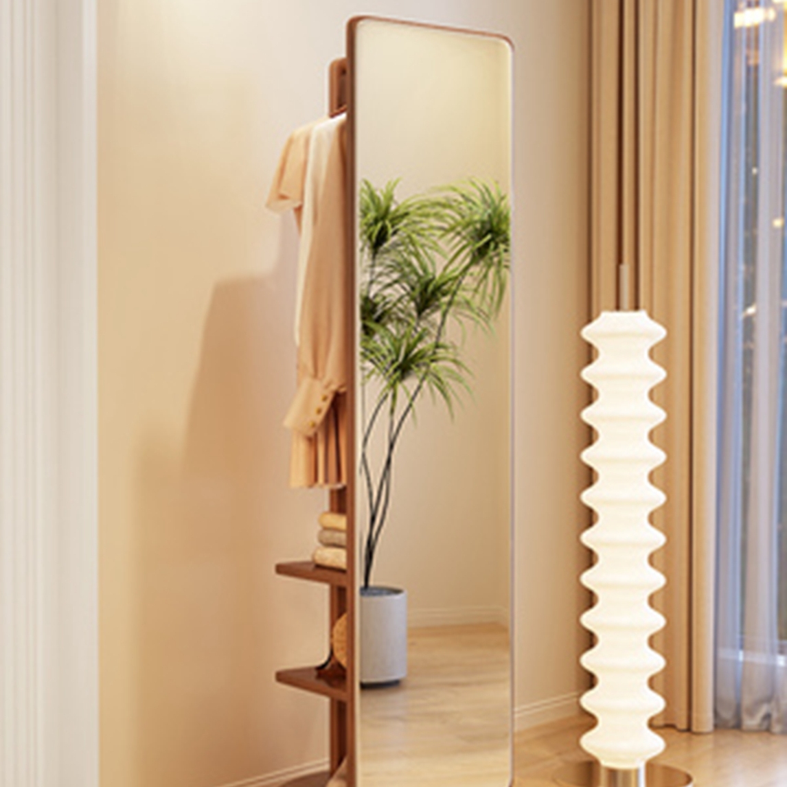 既能照镜子又能挂衣服的穿衣镜,真的太方便了!还可以360°无死角旋转,放在卧室也不用怕镜子对着床。而且占地只有0.2㎡,对于小户型小卧室来说也是轻松能拿下的。
